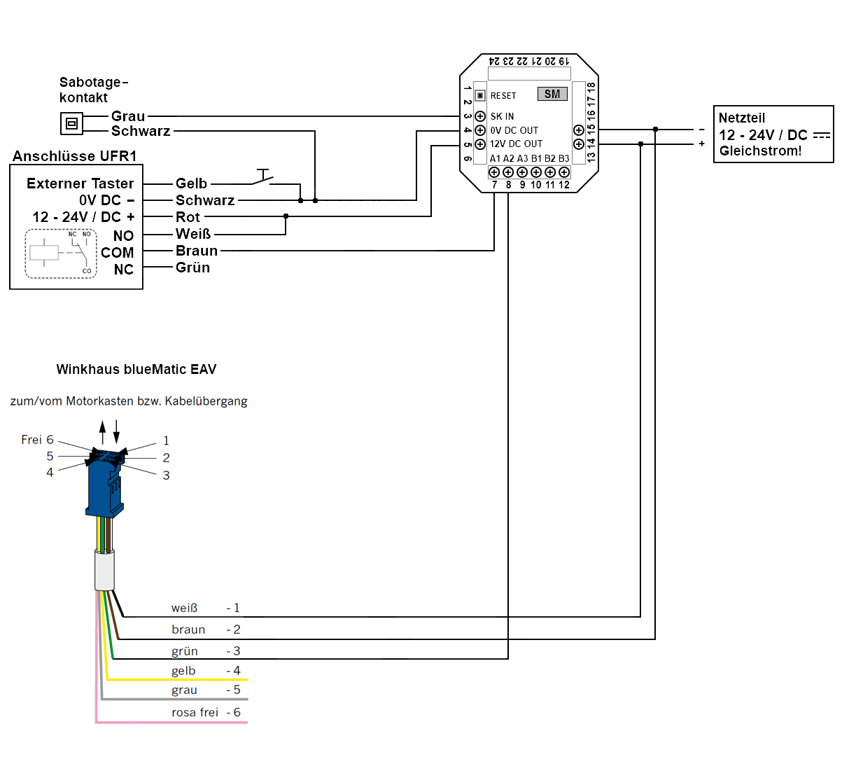 Anschlussdiagram GreenKi UFR1 Fingerscanner + Ansteuerung Winkhaus EAV3 Automatikschloss >>>
